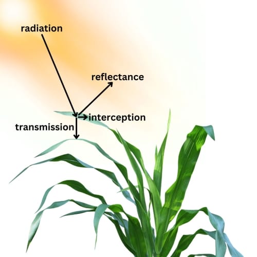 La luz que no es interceptada se refleja en su superficie o se transmite a través de las hojas y llega a las partes inferiores de la planta.